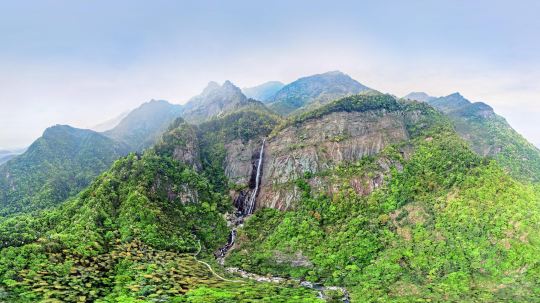 庐山耸峙于长江中下游平原与鄱阳湖畔,多峭壁悬崖,瀑布飞泻。