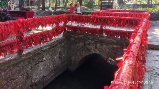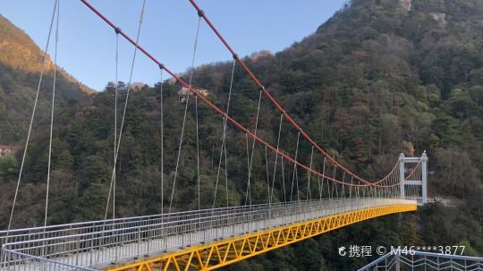 庐山天桥位于锦绣谷内,相传朱元璋与陈友谅大战于鄱阳湖,后朱元璋兵败被逼逃上庐山,带着所剩无几的残兵败将慌不择路逃到了悬崖边,下临深谷,前无去路,后有追兵,正在这危急之时,突然天降金龙化作虹桥,朱兵马刚刚过桥脱险,刹时晴天霹雳巨响,龙飞桥断,就此留下天桥奇观。后来朱元璋做了皇帝,这一美好传说流传至今。后人就势修筑一凌空巨石于深涧上游底部,游人或蹲或立于巨石前端,以远处悬崖作背景,利用视差可以拍得一张感觉惊险的“天桥留影”。
