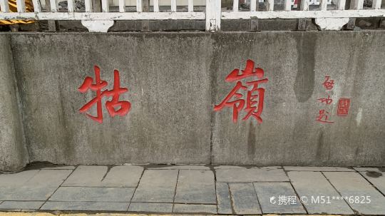 龙首崖绝壁:从悬崖左边一石亭观看,龙首崖悬壁峭立,一石横亘其上,恰似苍龙昂首。崖下扎根石隙的几棵虬松,宛如龙须,微风吹佛,恰似龙须飘飞。