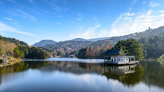 芦林湖位于江西省九江市庐山区海拔1040米的东谷芦林盆地,故又称东湖。芦林湖四周群山环抱,苍松翠柏,湖水如镜,似发光的碧玉镶嵌在林荫秀谷之中,在缥缈的云烟衬托下,犹如天上神湖。此处原是芦草丛生、野兽出没的芦林谷地,介于玉屏、星洲两峰之间。