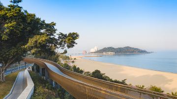 以鱼类美丽的鳍作为创意灵感的周边景观设计,既突出了与贝壳之间的呼应,又进一步强化了滨海建筑的特色。