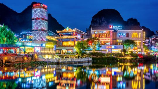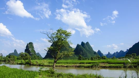 西街是阳朔的游客集散中心,吃、住、行都非常方便。如果你住在西街附近,可以白天从这里出发,在客栈或者路边的小店租一辆自行车,花上一天、半天时间逛逛阳朔。如果想要看自然风光,可以去遇龙河景区,顺便感受漂流的刺激。