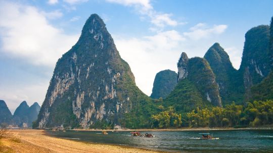 黄布倒影位于漓江精华段兴坪古镇境内,是20元人民币的背面景色。船行其中,江面开阔,水平如镜,青峰倒影,非常美丽。拿出一张20元的人民币与其合影,可以说是件非常有仪式感的事情。游人可以乘船游览,也可以在兴坪古镇内步行远观。