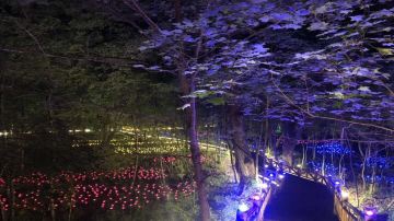 长白山梦幻森林峡谷位于长白山二道白河镇靠近向阳村和三道白河一侧,森林峡谷景区里有音乐喷泉等自然景观和人工景观,大森林景区夜景美丽,水里的霓虹灯闪耀着五彩的光影,衬托出不一样的长白山森林风光。