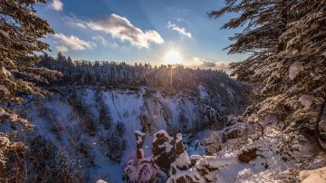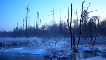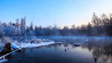 魔界风景区邻近二道白河镇,“魔界”的水系常年不结冰,每到冬季,当气温达零下20摄氏度时,雾气便开始蒸腾。当天气晴朗时,太阳初升时的阳光从雾里透过树挂晶莹剔透,水面的枯树、岸边的雾淞与喷薄而出的红日和蒸腾飘渺的雾气交融在一起,画面绝美。