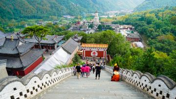 第二天可乘环保车游玩周边较远的地方。早上沿着镇街一直向北,过清水河就来到黛螺顶脚下,可登上大智路的1080个台阶,朝拜5尊文殊菩萨像(小朝台),也可乘索道往返。接着一路往南,在十方禅寺碧山寺内看缅甸玉佛和弥勒下生塑像,再去殊像寺参拜五台较高的彩塑文殊像,然后前往南山寺,看琳琅满目的石雕,远眺南、北、中三台的景色。如果时间充裕,还可以去当年顺治皇帝出家的镇海寺,看长胡子的观音像和精美的清代彩绘故事壁画。