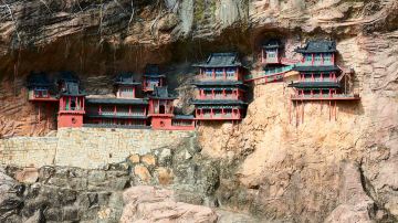 悬空寺位于恒山金龙峡翠屏峰的悬崖峭壁间,始建于北魏,距今已有1500多年历史,是国内现存较早、保存较好的高空木构摩崖建筑。
