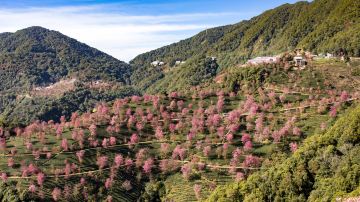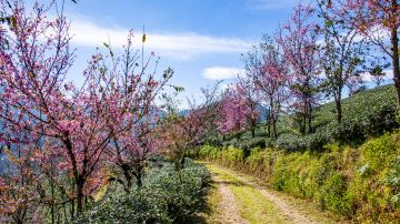 大理南涧县的无量山,每到冬天便会变得"不合时宜"起来。每年12月上旬,无量山樱花谷的冬樱在茶山间开放,繁樱绚丽,大片樱花林加上迷幻的晨雾,构成一幅迷人仙境。