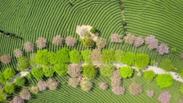 无量山樱花谷本是一处茶园,茶园里偶然生长了几株樱花。樱花盛开时,茶园主发觉很漂亮,又繁育了大量樱花苗。几年后,这些樱花树不仅为夏日的茶树带来荫凉,更为游人带来冬日的一处美景。