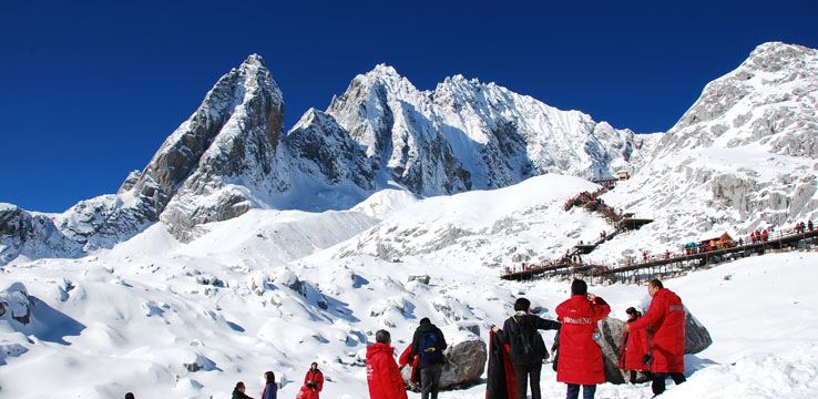 玉龙雪山索道是玉龙雪山景区三条索道之一,游客可以从位于甘海子的索道下站乘坐索道,直达海拔4506米的冰川公园。下了索道,沿着冰川上铺设的木质栈道,可以一直登顶到海拔4680米的最高处,近距离感受雪山和冰川的魅力。