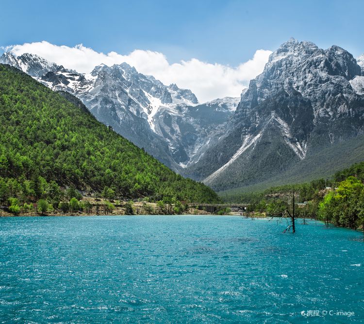 索道下站位于雪山脚下白水河畔,乘坐景区环保巴士可达。乘坐云杉坪索道可抵达海拔3240米的云杉坪,这里是远观玉龙雪山群峰的好位置。