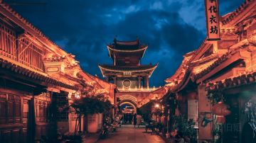 在古城,白天你可以逛逛复兴路,复兴路是古城的一条步行街,街两边有众多店铺,经营大理石雕刻、民族服饰和当地特色食品等当地特产。在各色店铺间穿行流连,可以淘些有民族特色的小东西,累了饿了,路边的小吃店也能吃到有特色的当地小吃。