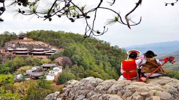 海云居前行约1.5公里即达宝相寺。寺庙始建于元代,位于一堵高耸险峻的大石崖上,依山而建,下层是大殿,二层为寺观,凿石抬梁,颇有悬空寺的味道,故被称为“云南的悬空寺”。从宝相寺继续步行上山,约半小时即可抵达稍显落败的金顶寺,两寺都是有悠久历史的古寺庙。
