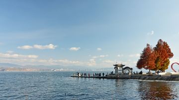岛上可参观的地方较少,更多游客还是选择在岸边给小普陀拍照。晴天时,苍山洱海都在背后,一座小岛和楼阁独立湖中,画面奇幻而又美丽。每当成群的海鸥飞过时,画面更加动人。花几块钱买一包饲料喂海鸥,会是十分有趣的体验。