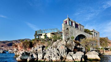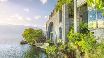 月亮宫依山而建,外观犹如海面升起的半轮明月,原本是舞蹈家杨丽萍的私宅,现在成为了艺术酒店,也是洱海边一道亮丽的风景。
