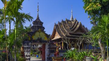 曼春满佛寺坐落在西双版纳傣族自治州景洪市勐罕镇傣族园内,始建于公元583年,距今已有1400多年历史,是当地有名的佛寺之一,传说是佛教传入西双版纳后修建的第一座佛寺。但原先的佛寺在上世纪60年代被毁,现在人们看到的佛寺是70年代末修建的。