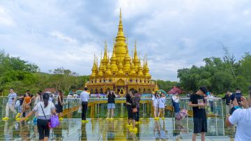 西双版纳勐泐文化旅游区(勐泐大佛寺)位于西双版纳傣族自治州景洪市,是在古代傣王朝的皇家寺院“景飘佛寺”的原址上恢复重建的,有3000多级台阶,体力好的游客可以步行登顶,当然也可以选择乘坐观光车。