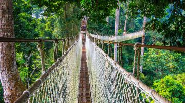 在雨林中可以看到高耸入云的参天大树,高的有80米,相当于20多层楼的高度。你还可以体验惊险刺激的空中走廊,它搭建在几十米高的树上,长约500米。走在走廊上面,俯瞰整片热带雨林景区,壮观且刺激。如果不想体验空中走廊,也可以沿着树丛中的小路蜿蜒前行,零距离探索热带雨林的神秘。