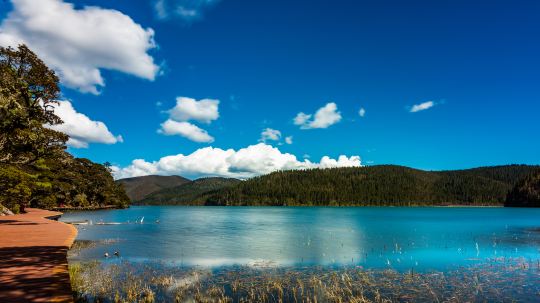 碧塔海是普达措环保车途经的一个景点,碧塔海沿岸也有栈道,沿路风景非常美,还有可能遇到小松鼠之类的小动物。沿着栈道前行可至湖畔码头,可以在这里坐上游船,泛舟于清澈碧绿的湖水上,尽享湖光山色。