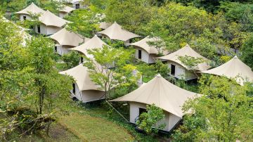 雪嵩村内有一座墅家玉庐雪嵩院酒店,是由知名的建筑师聂剑平精心设计,石头建筑的外观和雪嵩村风格合为一体,景观非常漂亮。想要更多的感受雪嵩村风情的游客可以在这里住下,酒店很高端,当年价格也是不菲。除了这家之外,村里还有一些客栈,各个当地还算齐全,可以按需求选择。