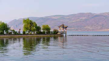 洱海有名的景色是东岸的双廊,这里可以欣赏到优美的湖景,阳光透过云层,折射在湖水上,形成了“洱海神光”,以连绵的青山为背景,是摄影爱好者捕抓的风景大片。