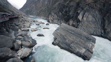 中虎跳地处香格里拉虎跳峡镇核桃园村和本地湾村之间,夹在玉龙雪山和哈巴雪山之中,是中国第二深的大峡谷(落差3800米),仅次于雅鲁藏布江大峡谷(落差5300米)。其中知名的虎跳石就坐落在中虎跳景区核桃园村的江水之中,传说老虎能够以此石为跳板往返于两岸。