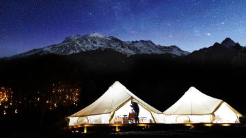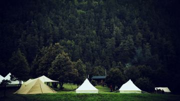 梵尘.德拉露营地,正对壮观的哈巴雪山,为香格里拉梵尘乡村旅游开发合作社旗下品牌,成立于2021年,为集野奢露营、餐饮、徒步登山、采摘观星等体验为一体的自然度假区,承接婚礼拍摄、主题团建、商业写真等活动。