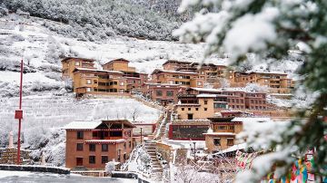 巴拉村位于景区的西侧,是一座古老的藏族村寨,这里有上百年前的藏式民居。村子周边,有茂密的植被、陡峭的岩壁,远处就是巍巍雪山,景色宁静优美,更是出大片的好地方。