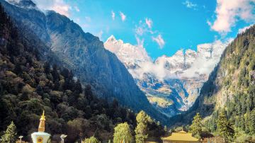 东竹林寺位于德钦县书松乡境内,214国道路边,始建于1667年,原名“措措冲岗寺”,意为仙鹤湖畔之寺,建成时位列康藏十三林之一。