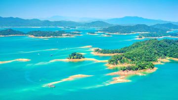 河源万绿湖-(万绿湖游船参考航班:(09:00/10:00/11:00/12:00/13:00/14:00/15:00)湖水壮丽,水质纯净,水色靓丽,水色秀美,在全国少见。有新丰江国家森林公园和河源新港镇省级自然保护区。被誉为地球北回归线的“沙漠带三大奇观”之一。与浙江的千岛湖相比,堪称“姐妹湖”。