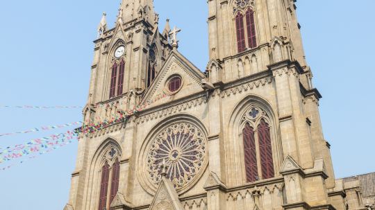 这座教堂历史上曾是清末两广总督府,1863年被入侵的英军改建为教堂,教堂塔尖高58.5米,气势恢宏,全身都由花岗岩打造。