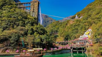 韶关云门山旅游度假区坐落于世界过山瑶之乡——广东省韶关市乳源县境内,地理位置优越,交通便利,京珠高速、乐广高速出口近在咫尺。景区依托云门山得天独厚的自然风景资源,发挥云门寺佛教文化胜地和“世界过山瑶之乡”的优势,突出体现“云门禅宗文化”及“过山瑶民俗风情文化”的特色主题,度假区内森林植被覆盖率高达89.3%,奇峰林立,古木参天、空气清新、山花烂漫,珍贵野生动植物品种丰富,全年林中溪水潺潺,目前景区开放的项目有自然风景区、云上飞瀑、观光电梯、玻璃桥、观光缆车、机动游乐园、百亩花海、萌宠乐园、孔雀乐园。