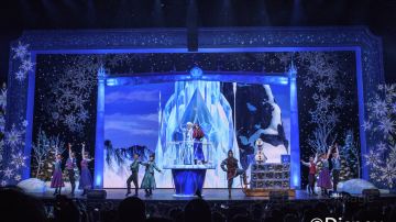 在“梦幻世界”的“林间剧场”,观众们将跟随着《冰雪奇缘》中的朋友们和阿伦黛尔的村民们一同分享故事,欢声歌唱,感受充满欢乐的冰雪互动表演。两位来自阿伦黛尔的节庆导游将主持庆典并介绍音乐剧的每位成员,闻名遐迩的艾莎、安娜和克里斯托夫也将加入这场盛会,欢迎各年龄层的游客跟随心爱的《冰雪奇缘》音乐一起欢唱。