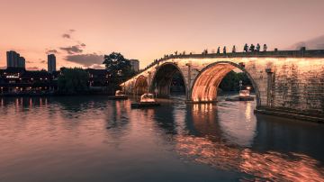 拱宸桥位于杭州市拱墅区北端,东连台州路,西接桥弄街,是杭州城区较大的石拱桥,京杭大运河到杭州的终点标志。