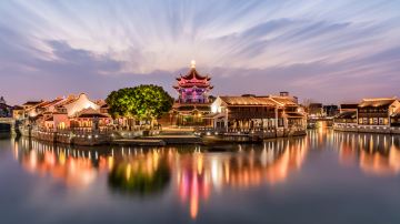 周庄是江南闻名于世的水乡古镇,镇上水路纵横,明清老建筑依河而建,画家陈逸飞笔下的双桥刻画出小桥流水人家的温柔,古镇南边的南湖开阔美丽。夜晚周庄亮了灯,又别有一番意境。