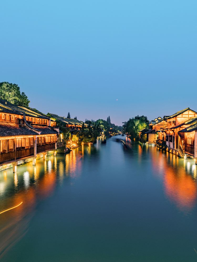 夜游西栅和白天是完全不同的感受,每当夜幕降临,景区内精心布置的灯光会将整个西栅勾画得晶莹剔透。温暖的灯光倒影在水面上,拍出的照片有种灵动之美。此时,坐摇橹船泛舟西市河,大概是游览西栅经典的体验。