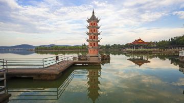 太湖仙岛位于鼋头渚内,是需要坐船前往的孤岛,岛上有道教仙宫和道、佛两教石窟塑像,其中道院内高18米的玉皇大帝像惹人注目。登顶岛上小山可环望四周,天气晴好时能看到湖面上的翩翩舟影,感受到太湖的浩淼之美。