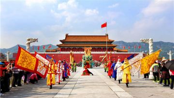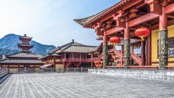 秦王宫景区位于横店影视城内,是1997年为著名导演陈凯歌拍摄历史巨片《荆柯刺秦王》而建。这里可以说是众多影视大片和历史正剧的摇篮,《英雄》、《寻秦记》、《木乃伊3》及《美人心计》等近百部影视剧大片都在这里拍摄。