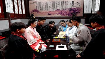 数字馆用现代技术展现古代题材,展品诸如动画《南都繁绘景物图卷》(类似世博会中国馆里的清明上河图)。比较有意思的是,这里有很多互动游戏,你可以触摸屏幕来玩古代背景的游戏。