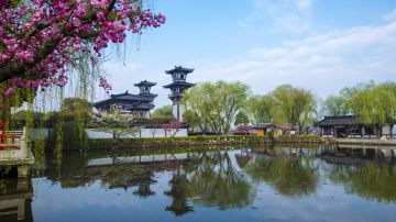 拈花湾与灵山胜境毗邻,在灵山胜境的西边,小镇风格仿古,以禅意为主题。一幢幢米色、白色的特色建筑覆盖着青色的大坡顶,门窗和柱子多用木头制成,镇中点缀着小桥流水和园林小景,是特别适合来此度假放松,修身养性的民宿小镇。