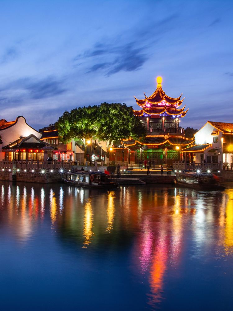 山塘街西北端至虎丘,东南端在阊门,街道与山塘河并行,一座座古桥横跨河面,石板街两侧是粉墙黛瓦的老房子和林立的店铺。晚上,亮起的红灯笼倒映在河里,适合拍照。也可以乘游船,或是找家茶馆喝茶、听评弹。