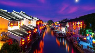 周庄是江南闻名于世的水乡古镇,镇上水路纵横,明清老建筑依河而建,画家陈逸飞笔下的双桥刻画出小桥流水人家的温柔,古镇南边的南湖开阔美丽。夜晚周庄亮了灯,又别有一番意境。
