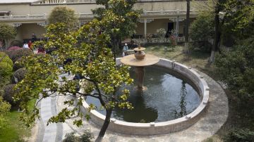 第五进是琴棋室,第六进是书房,然后是后花园,。后花园的确有过人之处,园中小河箸泾与外面的大湖相通,有一方水池是供船只调头、停靠所用的,实际上这就是张家的私人码头,即“船自家中过”,张家家底之殷实可见一斑。后花园中的一柱太湖石玉燕峰也很引人注目。
