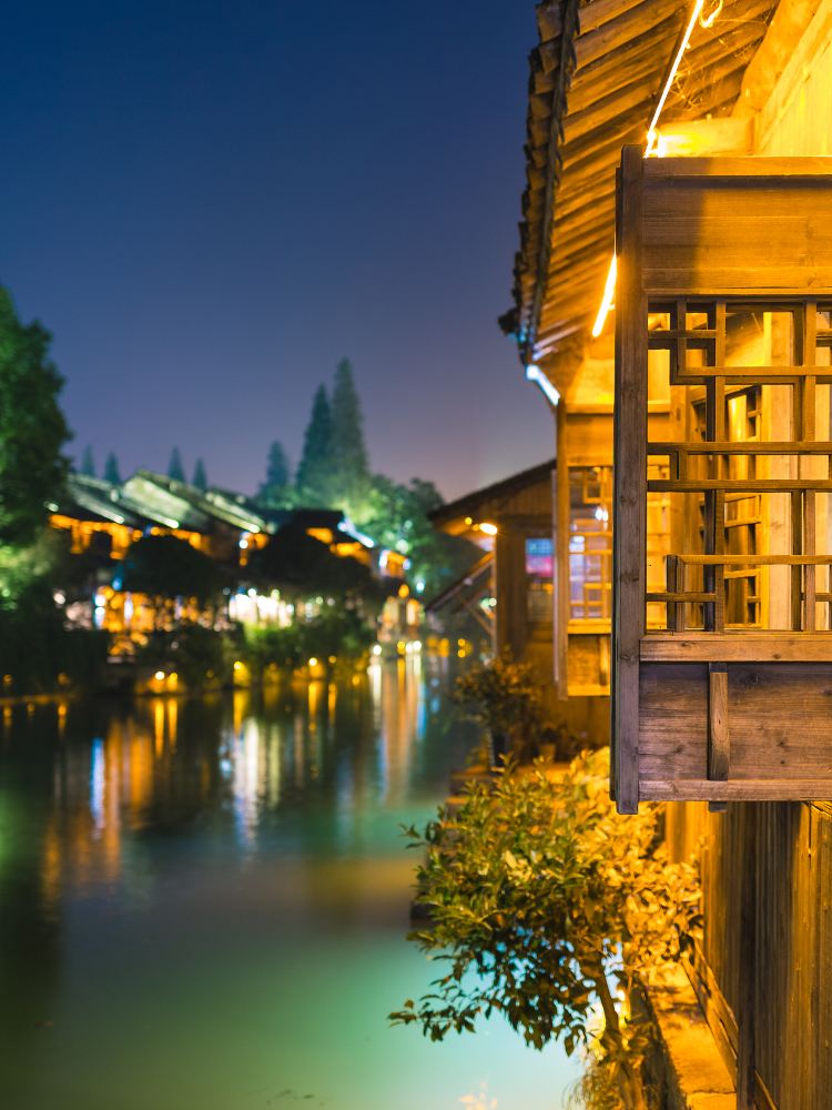 夜游西栅和白天是完全不同的感受,每当夜幕降临,景区内精心布置的灯光会将整个西栅勾画得晶莹剔透。温暖的灯光倒影在水面上,拍出的照片有种灵动之美。此时,坐摇橹船泛舟西市河,大概是游览西栅经典的体验。