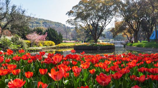 游览梅园对季节性要求较高,可选择在春天。早春的梅花有红的、白的、粉的,单瓣、复瓣,品种繁多,有的在同一株树上能开出不同颜色的花朵,还有珍贵的淡绿色梅花,双休日来赏梅的游客尤其多,有条件的话选工作日前来。比梅花花期稍晚点,等到了3月下旬-4月,郁金香盛开,景区会举办郁金香花展。此外,位于园林博览园的观赏温室内可以看到沙漠中的植物。不是春季游览的话,夏季来赏荷,秋闻桂花香,中秋节有灯会可看。