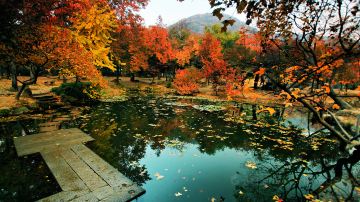 天平山在苏州市区西边15公里处,是范仲淹的先祖埋葬地,和范氏相关的人文景点主要集中在山脚。天平山海拔201米,山虽不高,但有点险峻,爬起来很带劲。每年10-12月红枫节时,斑斓秋色总能吸引无数长枪短炮。